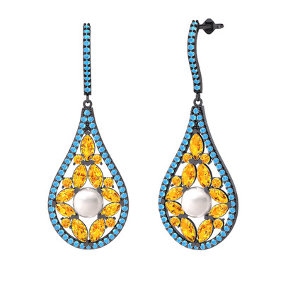 Inci, sitrin ve akuamarin 925 ayar siyah rodyum kaplama gümüş küpe
