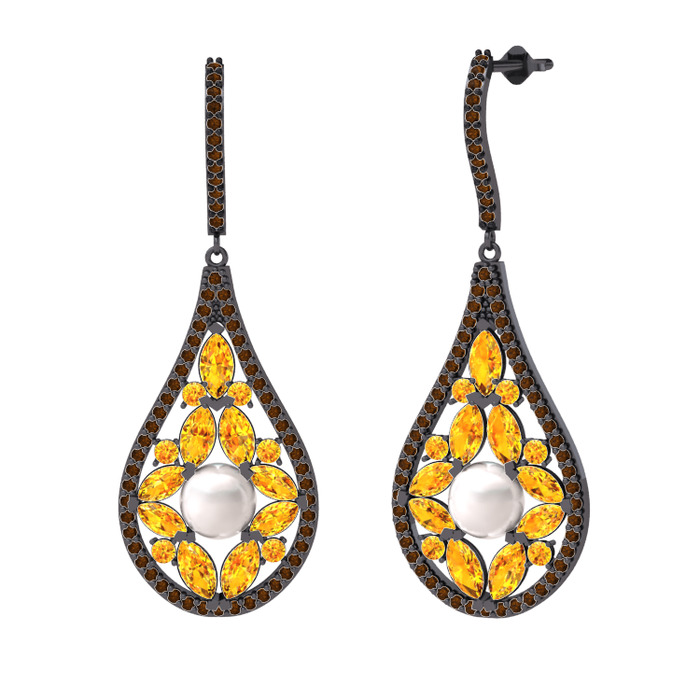 Inci, sitrin ve dumanlı kuvars 925 ayar siyah rodyum kaplama gümüş küpe