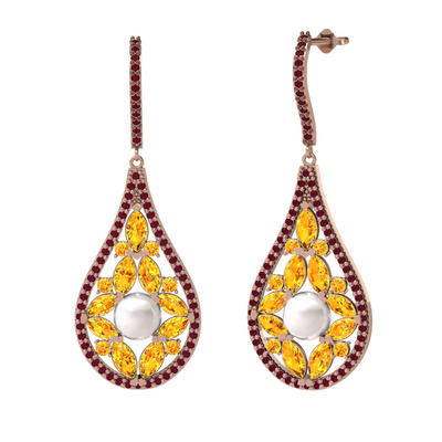Inci, sitrin ve kök yakut 14 ayar rose altın küpe