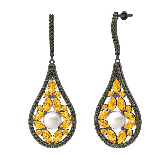 Inci, sitrin ve peridot 925 ayar siyah rodyum kaplama gümüş küpe