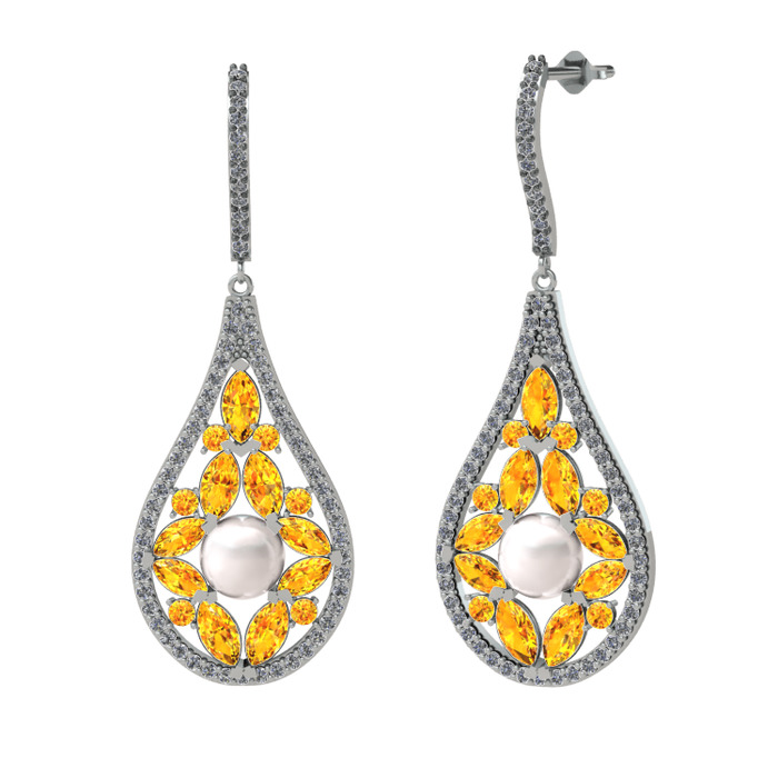 Inci, sitrin ve pırlanta 8 ayar beyaz altın küpe (1.11 karat)