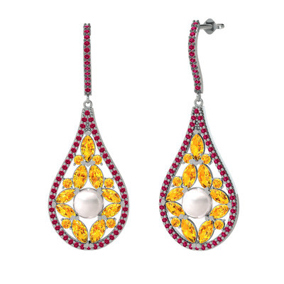 Inci, sitrin ve rodolit garnet 18 ayar beyaz altın küpe