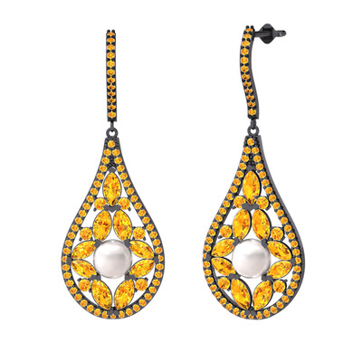 Inci ve sitrin 925 ayar siyah rodyum kaplama gümüş küpe