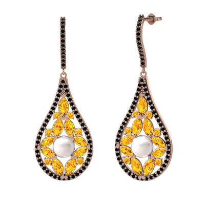 Inci, sitrin ve siyah zirkon 14 ayar rose altın küpe