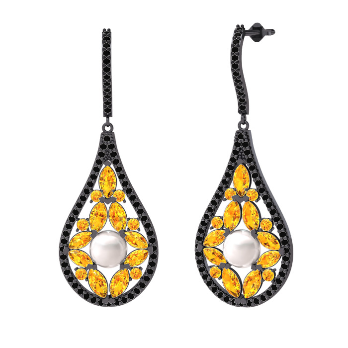 Inci, sitrin ve siyah zirkon 925 ayar siyah rodyum kaplama gümüş küpe