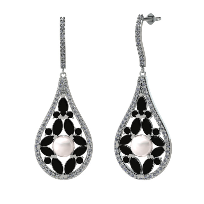Inci, siyah zirkon ve pırlanta 18 ayar beyaz altın küpe (1.11 karat)