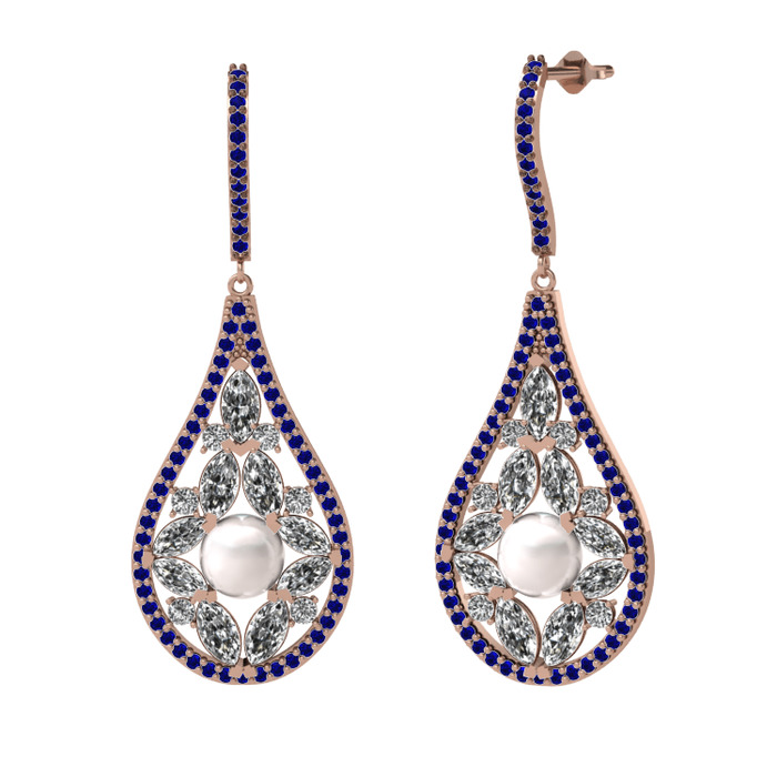 Inci, swarovski ve lab safir 18 ayar rose altın küpe