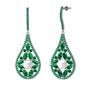 Inci, yeşil kuvars ve kök zümrüt 14 ayar beyaz altın küpe