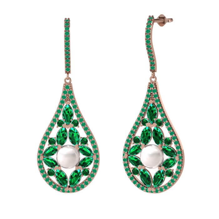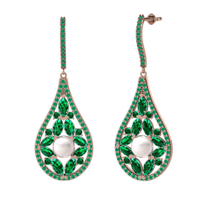 Inci, yeşil kuvars ve kök zümrüt 8 ayar rose altın küpe