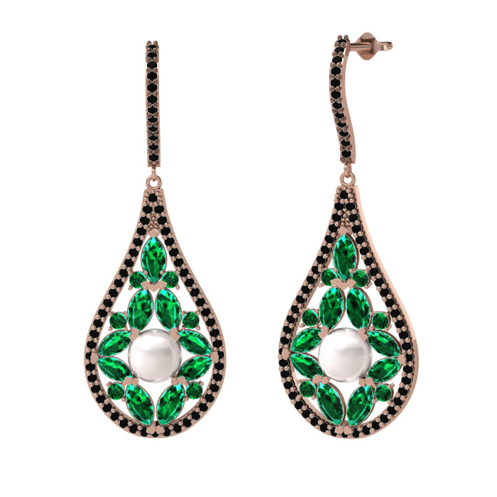 Inci, yeşil kuvars ve siyah zirkon 925 ayar rose altın kaplama gümüş küpe