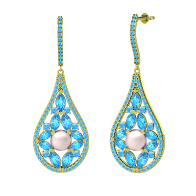 Pembe inci ve akuamarin 8 ayar altın küpe