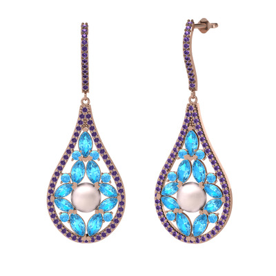 Pembe inci, akuamarin ve ametist 18 ayar rose altın küpe