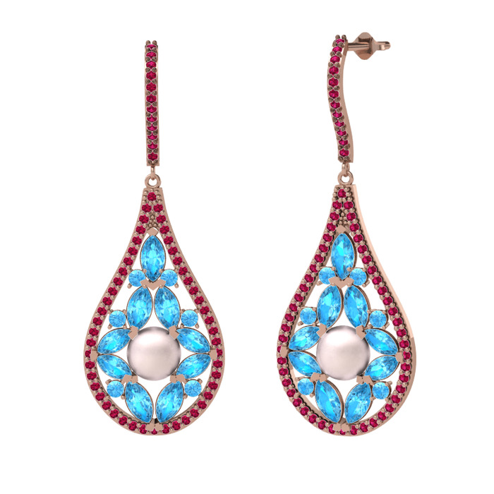 Pembe inci, akuamarin ve rodolit garnet 925 ayar rose altın kaplama gümüş küpe