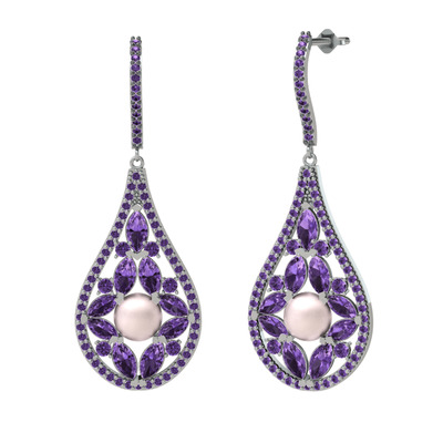 Pembe inci ve ametist 14 ayar beyaz altın küpe