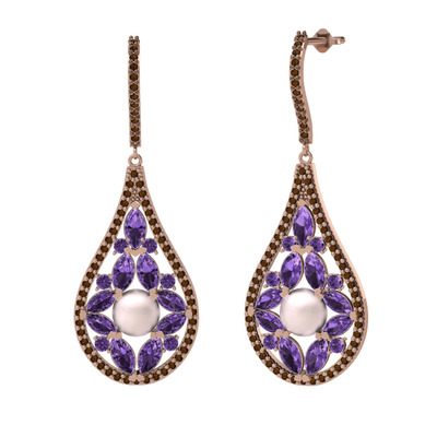Pembe inci, ametist ve dumanlı kuvars 14 ayar rose altın küpe