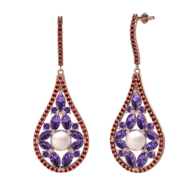 Pembe inci, ametist ve garnet 8 ayar rose altın küpe