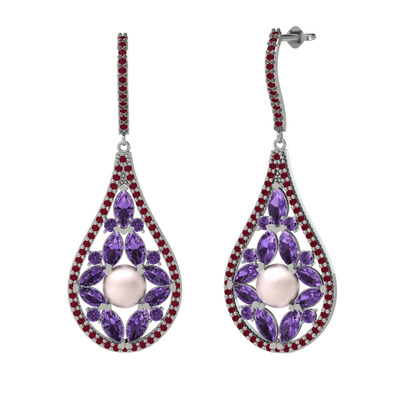 Pembe inci, ametist ve kök yakut 18 ayar beyaz altın küpe