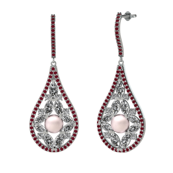Pembe inci, beyaz zirkon ve kök yakut 925 ayar gümüş küpe