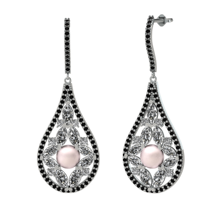Pembe inci, beyaz zirkon ve siyah zirkon 18 ayar beyaz altın küpe