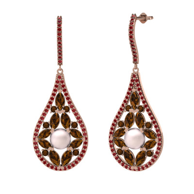 Pembe inci, dumanlı kuvars ve garnet 18 ayar rose altın küpe