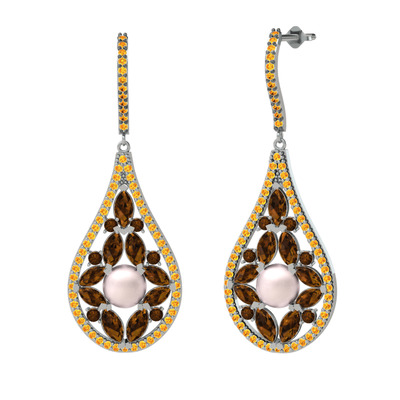 Pembe inci, dumanlı kuvars ve sitrin 8 ayar beyaz altın küpe