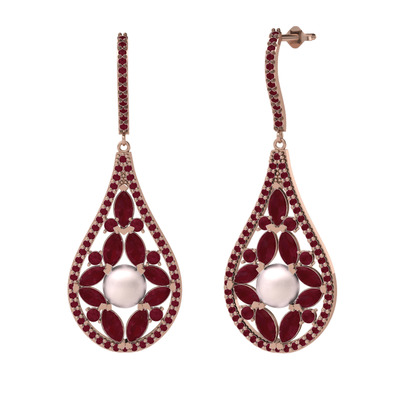 Pembe inci ve kök yakut 14 ayar rose altın küpe