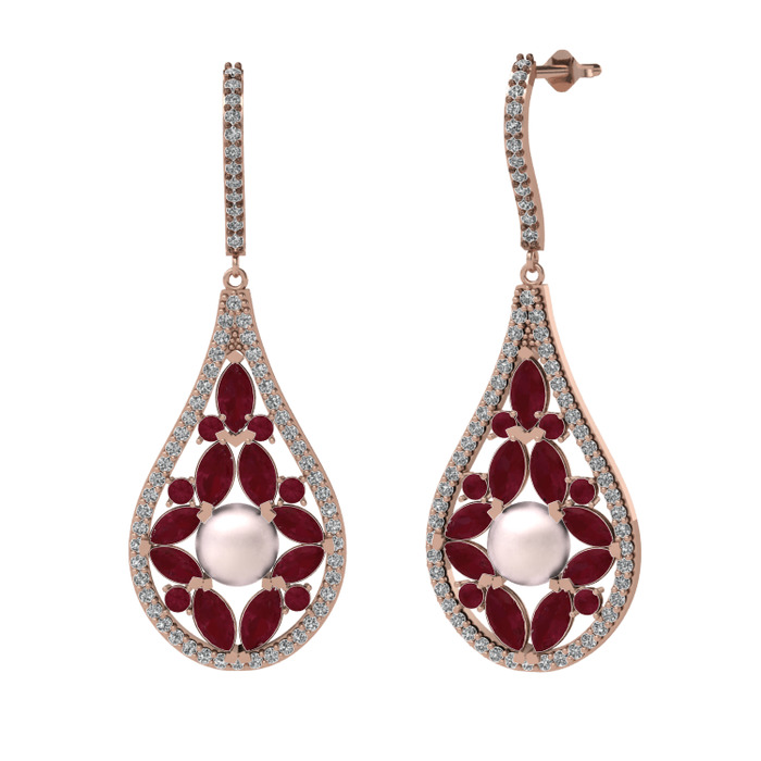 Pembe inci, kök yakut ve beyaz zirkon 8 ayar rose altın küpe