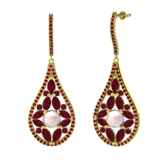 Pembe inci, kök yakut ve garnet 8 ayar altın küpe