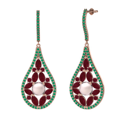 Pembe inci, kök yakut ve kök zümrüt 8 ayar rose altın küpe