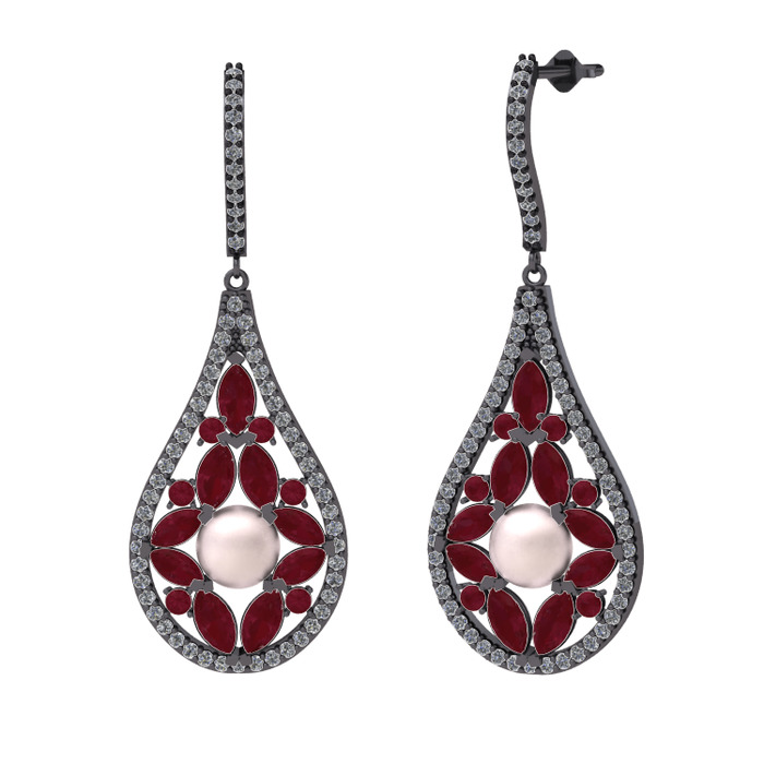 Pembe inci, kök yakut ve pırlanta 925 ayar siyah rodyum kaplama gümüş küpe (1.11 karat)