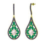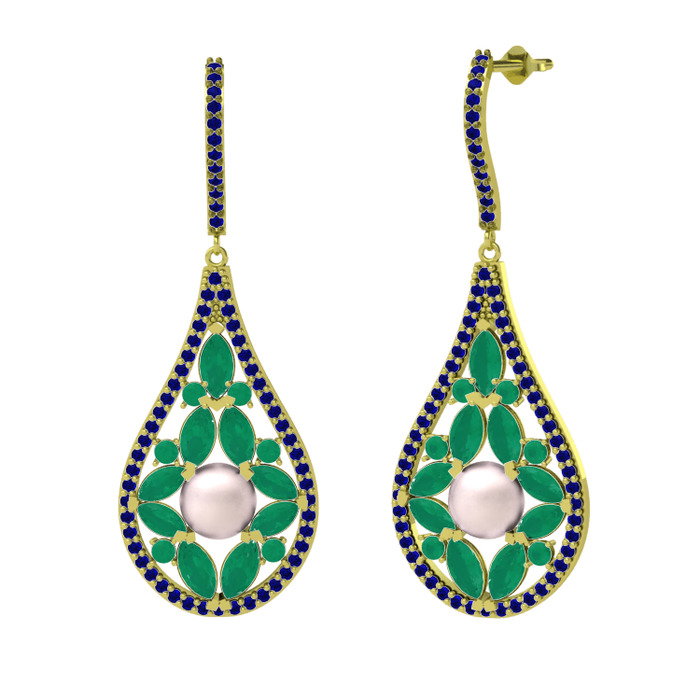 Pembe inci, kök zümrüt ve lab safir 18 ayar altın küpe
