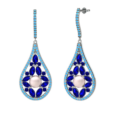 Pembe inci, lab safir ve akuamarin 14 ayar beyaz altın küpe