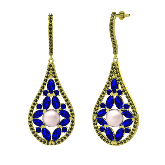 Pembe inci, lab safir ve peridot 8 ayar altın küpe