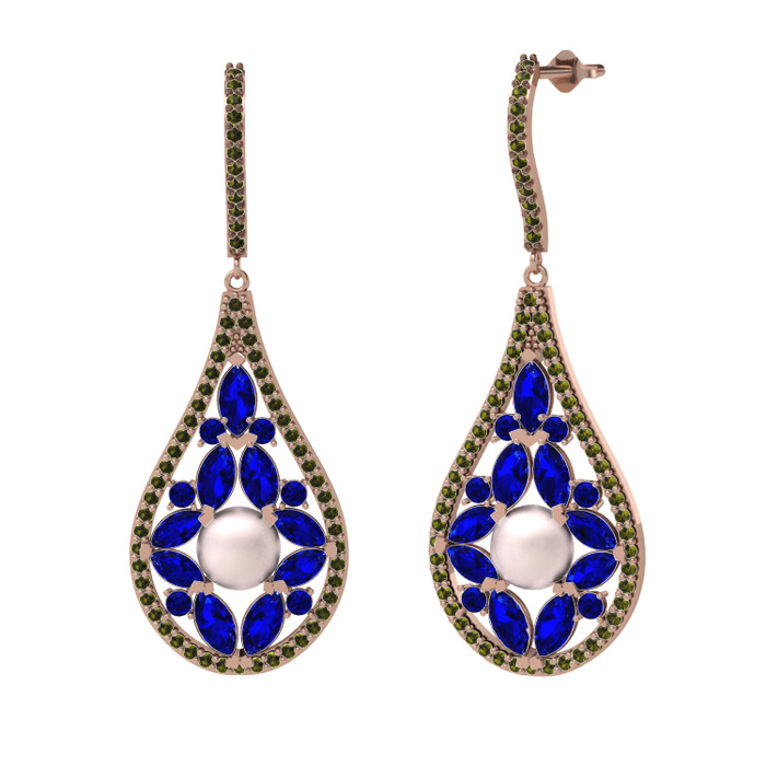 Pembe inci, lab safir ve peridot 925 ayar rose altın kaplama gümüş küpe