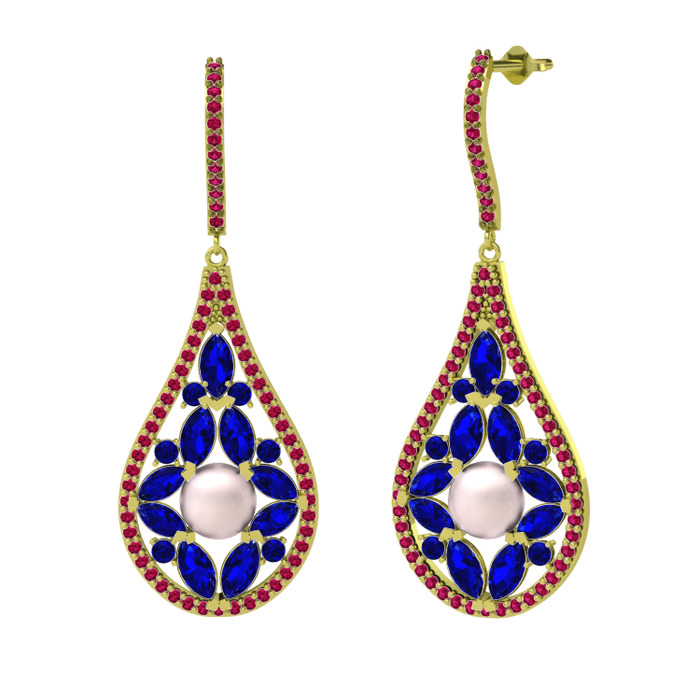 Pembe inci, lab safir ve rodolit garnet 14 ayar altın küpe