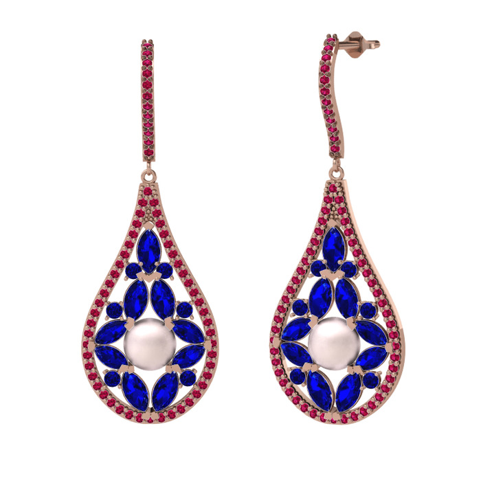 Pembe inci, lab safir ve rodolit garnet 925 ayar rose altın kaplama gümüş küpe