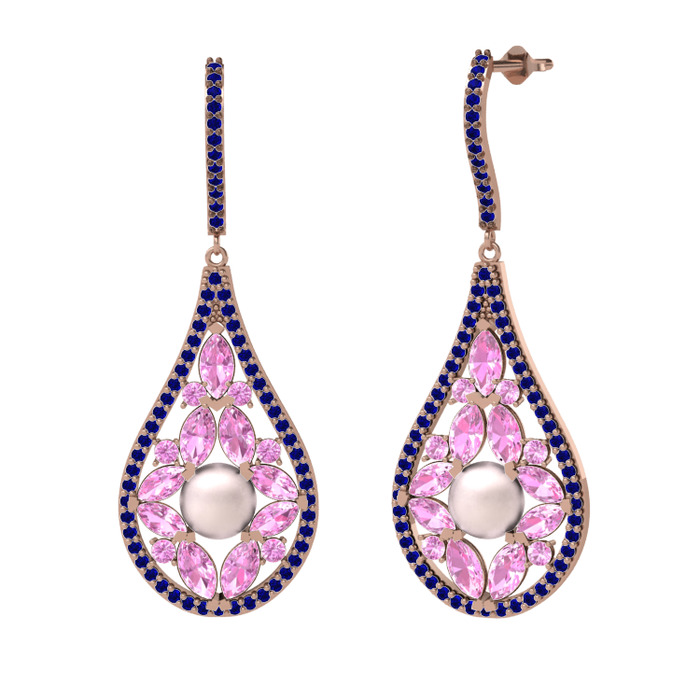 Pembe inci, pembe kuvars ve lab safir 8 ayar rose altın küpe