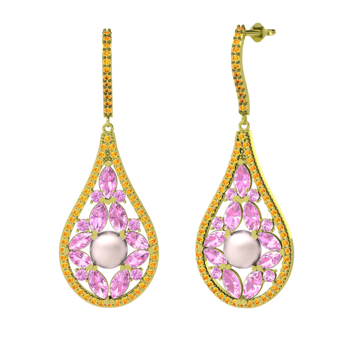 Pembe inci, pembe kuvars ve sitrin 8 ayar altın küpe