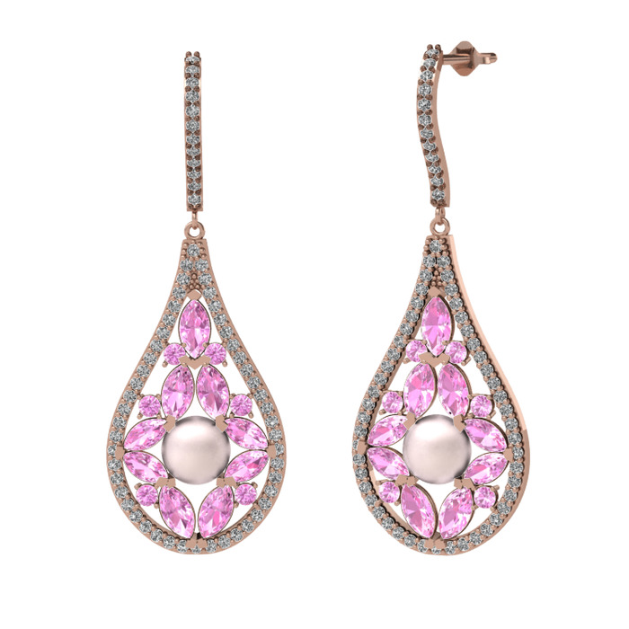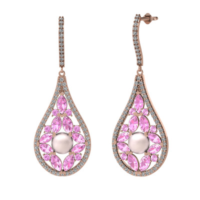 Pembe inci, pembe kuvars ve swarovski 14 ayar rose altın küpe