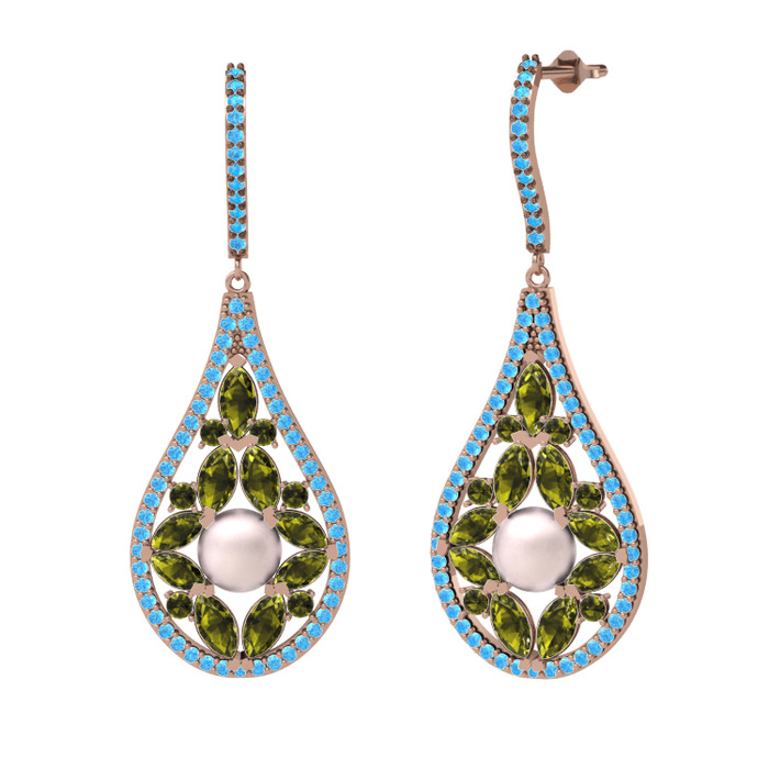 Pembe inci, peridot ve akuamarin 18 ayar rose altın küpe