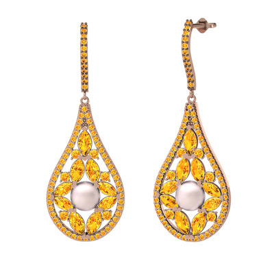 Pembe inci ve sitrin 8 ayar rose altın küpe