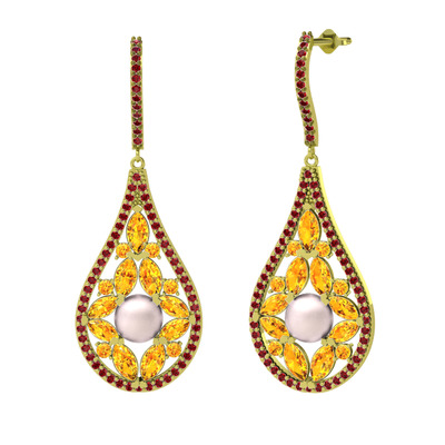 Pembe inci, sitrin ve garnet 18 ayar altın küpe