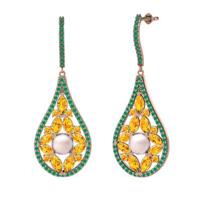 Pembe inci, sitrin ve kök zümrüt 8 ayar rose altın küpe