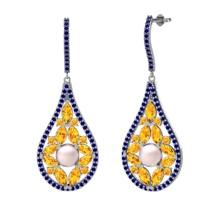 Pembe inci, sitrin ve lab safir 925 ayar gümüş küpe