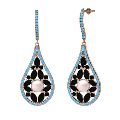 Pembe inci, siyah zirkon ve akuamarin 8 ayar rose altın küpe