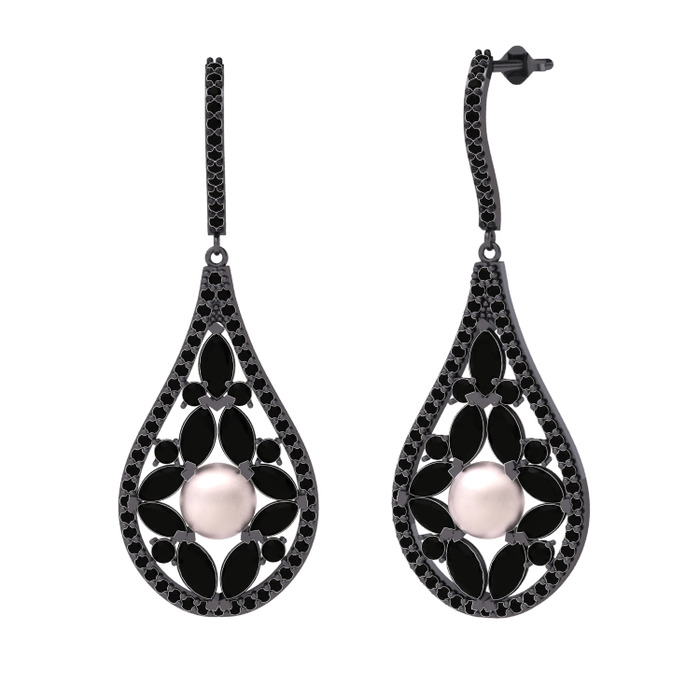 Pembe inci ve siyah zirkon 925 ayar siyah rodyum kaplama gümüş küpe