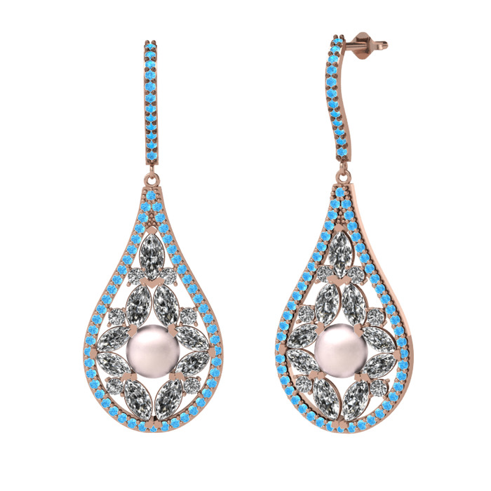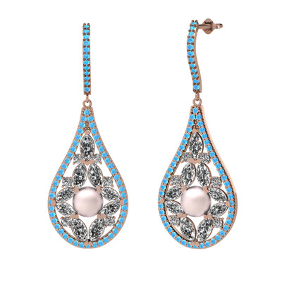 Pembe inci, swarovski ve akuamarin 14 ayar rose altın küpe