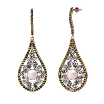 Pembe inci, swarovski ve peridot 14 ayar rose altın küpe