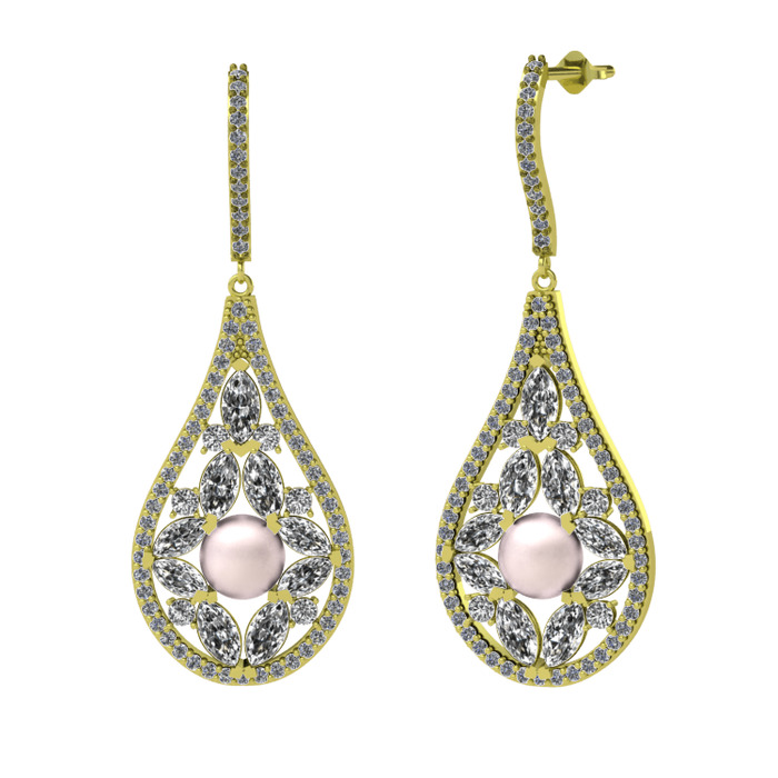 Pembe inci, swarovski ve pırlanta 18 ayar altın küpe (1.11 karat)