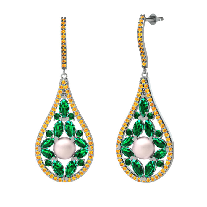 Pembe inci, yeşil kuvars ve sitrin 14 ayar beyaz altın küpe